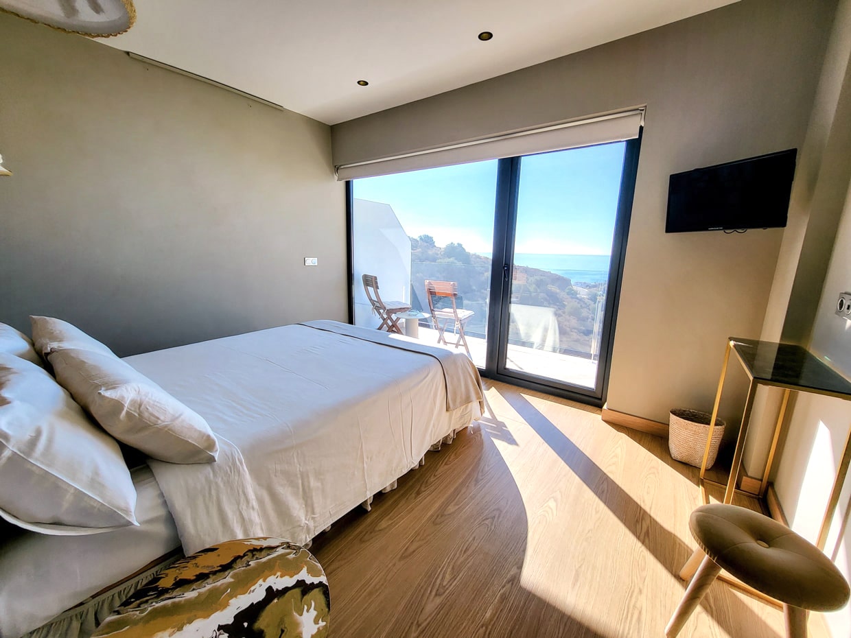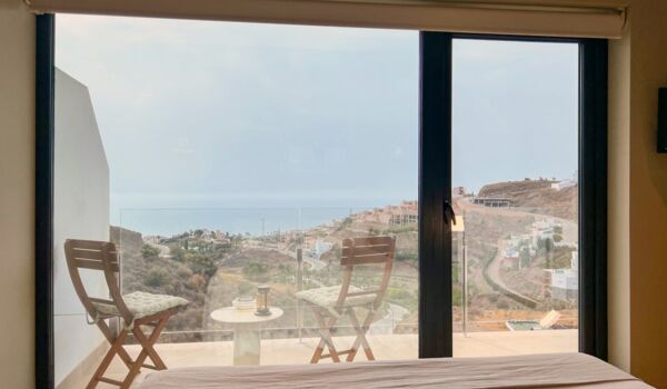 Das Zimmer ist 17 m2 groß und besitzt einen kleinen Balkon. Das Zimmer verfügt über ein eigenes Badezimmer und eine Dusche mit Meerblick. Eine Küche und ein Aufenthaltszimmer können gemeinschaftlich genutzt werden. Durch ein großes Fenster haben Sie einen atemberaubenden Blick auf das tiefblaue Mittelmeer.